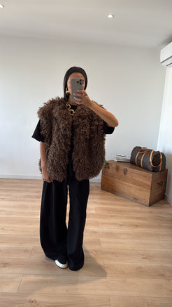 Notre veste sans manches "BETY" - Chocolat, affranchira tous vos looks ! L'effet fausse fourrure aspect mouton fait son come back pour votre plus grand bonheur